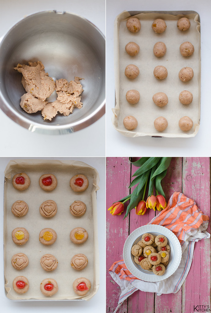 Decora se vuoi con una mandorla intera. Ricavate delle palline, fate un buco al centro (io ho utilizzato il dorso di un mestolo di legno) e …. Marmellata nell impasto dei biscotti;